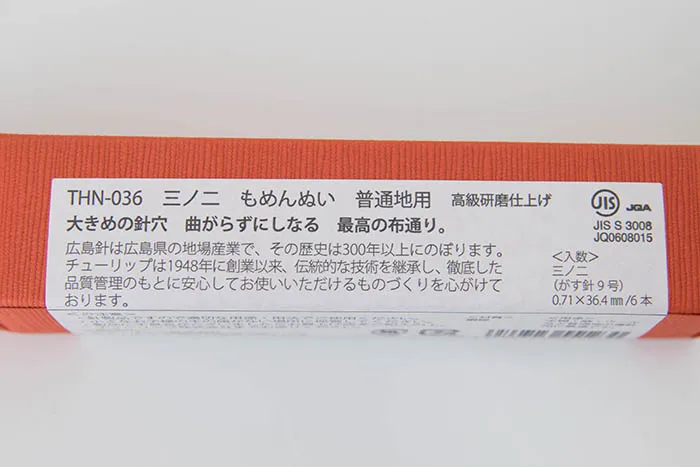 糸通しの良さを保証する針穴の大きさと内面の美しさ、生地に優しい理想の形状が特長です。