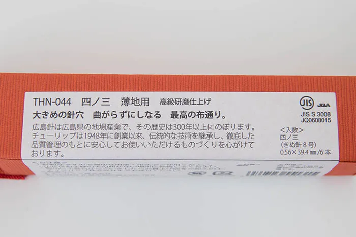 ステッチの布通りを、ある程度決めてしまうのが針先形状。チューリップの針は、鋼(はがね)の特徴である「強靭さ」と「耐磨耗性」を活かすとともに、高精度な研磨加工を繰り返すことで理想的な針先形状を生み出しました。