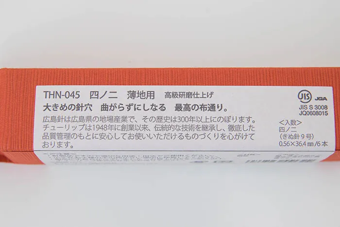 糸通しの良さを保証する針穴の大きさと内面の美しさ、生地に優しい理想の形状が特長です。