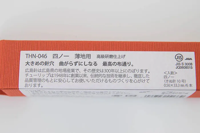 ステッチの布通りを、ある程度決めてしまうのが針先形状。チューリップの針は、鋼(はがね)の特徴である「強靭さ」と「耐磨耗性」を活かすとともに、高精度な研磨加工を繰り返すことで理想的な針先形状を生み出しました。