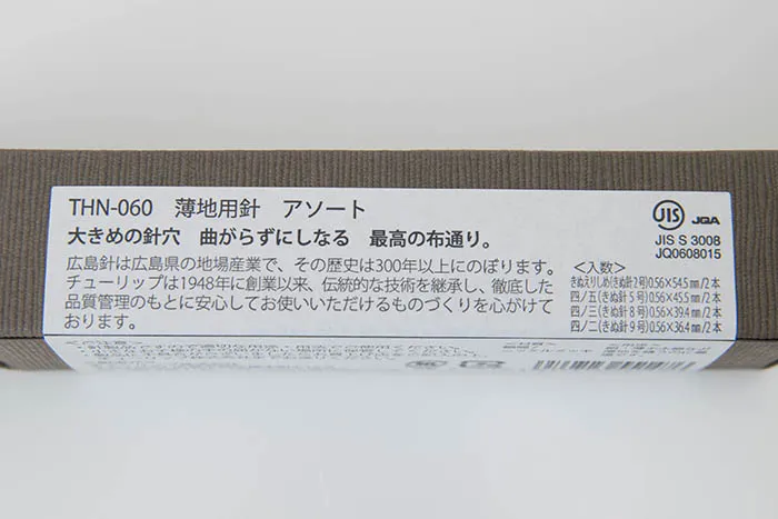 糸通しの良さを保証する針穴の大きさと内面の美しさ、生地に優しい理想の形状が特長です。