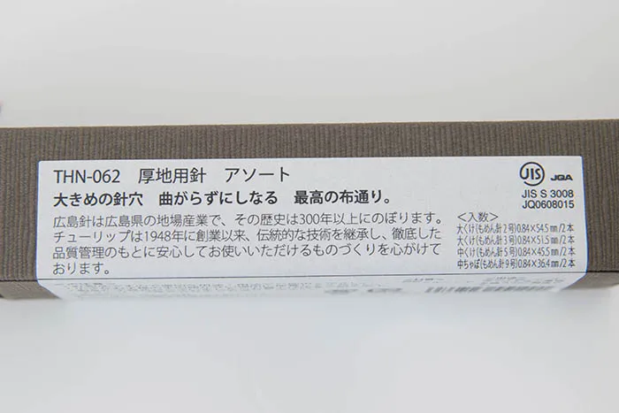 ステッチの布通りを、ある程度決めてしまうのが針先形状。チューリップの針は、鋼(はがね)の特徴である「強靭さ」と「耐磨耗性」を活かすとともに、高精度な研磨加工を繰り返すことで理想的な針先形状を生み出しました。