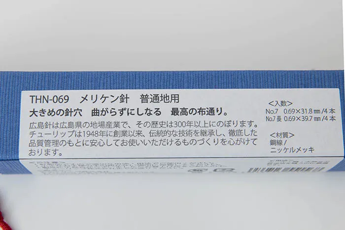 糸通しの良さを保証する針穴の大きさと内面の美しさ、生地に優しい理想の形状が特長です。