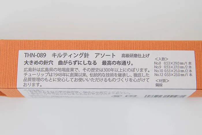 糸通しの良さを保証する針穴の大きさと内面の美しさ、生地に優しい理想の形状が特長です。