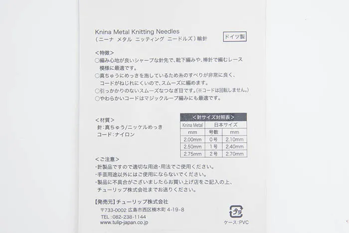 真ちゅうにメッキを施しているので、糸の滑りが非常に良く、コードがねじれにくいので、スムーズに編めます。