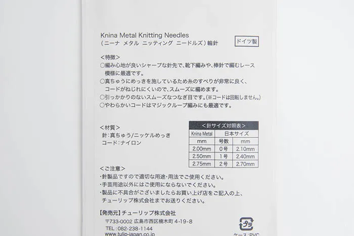 真ちゅうにメッキを施しているので、糸の滑りが非常に良く、コードがねじれにくいので、スムーズに編めます。
