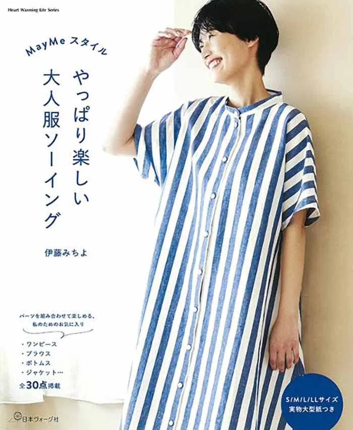 何を着たらしっくりくるのか…と悩むことも多い今日この頃。大人の「小悩み」を解決しつつ、安心して着られる定番デザインからちょっぴり冒険のデザインまで、今のわたしにしっくりくるMayMe流パターンをご紹介します。ワンピースやブラウスは、掲載面のパーツを組み合わせて、様々なアレンジも楽しめるようにデザインされているので、「やっぱりソーイングって楽しいな」という気持ちも存分に味わってもらえる1冊です。S~LLサイズ。実物大型紙3枚つき。
