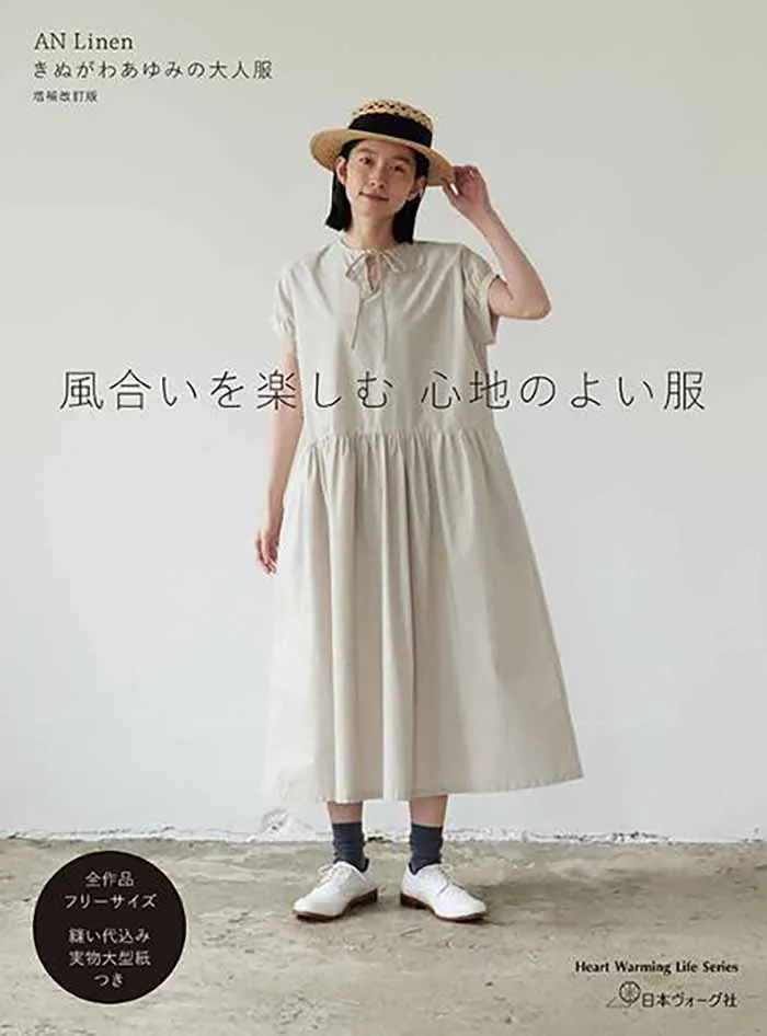 『AN LINEN きぬがわあゆみの大人服』に新作6点を加え、新たに撮影・レイアウトし直した増補改訂版。作品は、ワンピースやブラウス、エプロン、パンツなど、ちょっと上品にラフに着こなせる、ナチュラルテイストの日常着を多数掲載。秋冬にも活躍するジレやコートもあり、一年中コーディネイトが楽しめます。全作品フリーサイズ。縫い代込みの実物大型紙つき(でき上がり線入り)。
