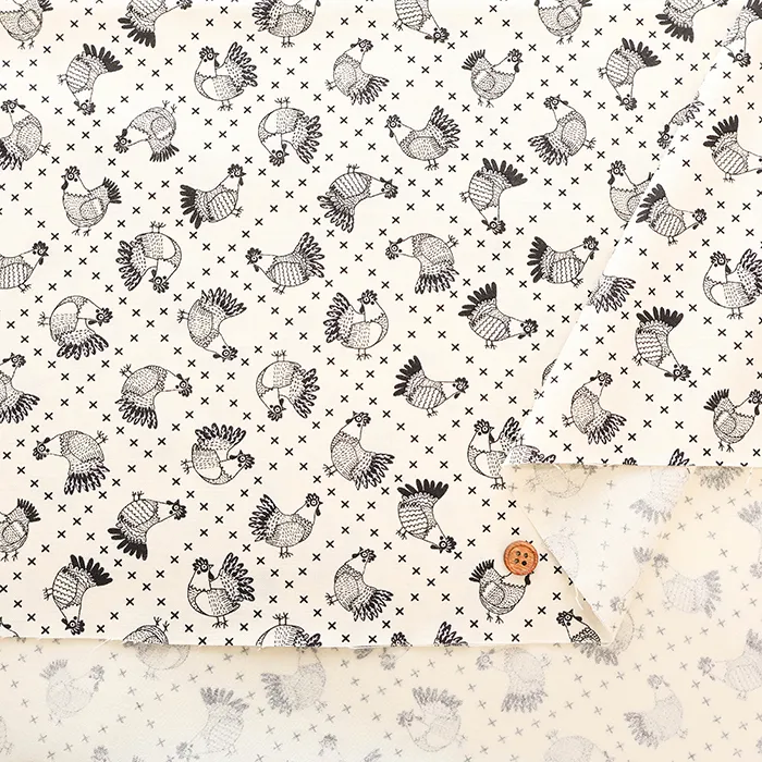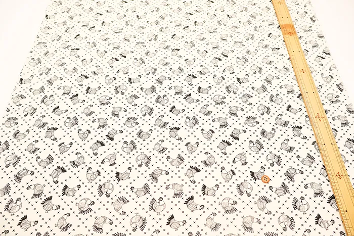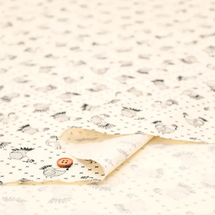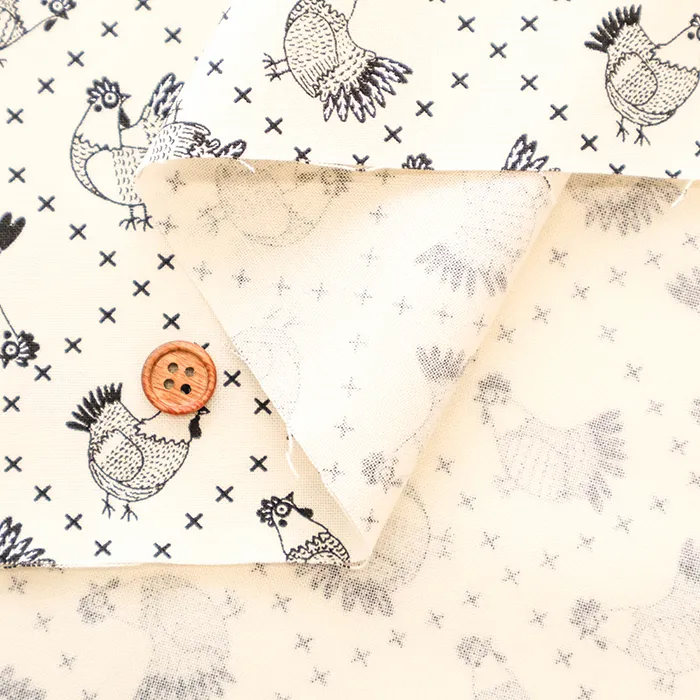 シーチングくらいの厚みで、扱いやすい平織りの生地です。扱いやすい生地ですので、インテリアや雑貨小物などの材料にいかがでしょうか。