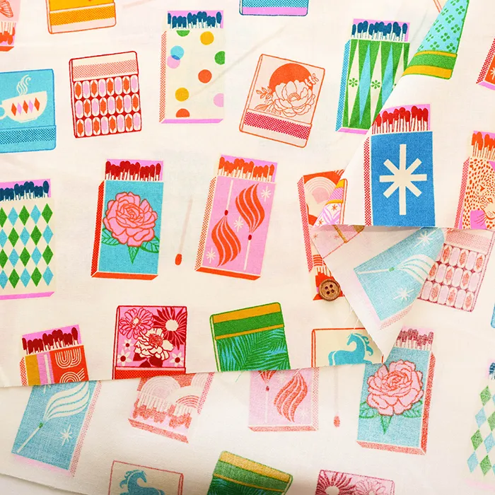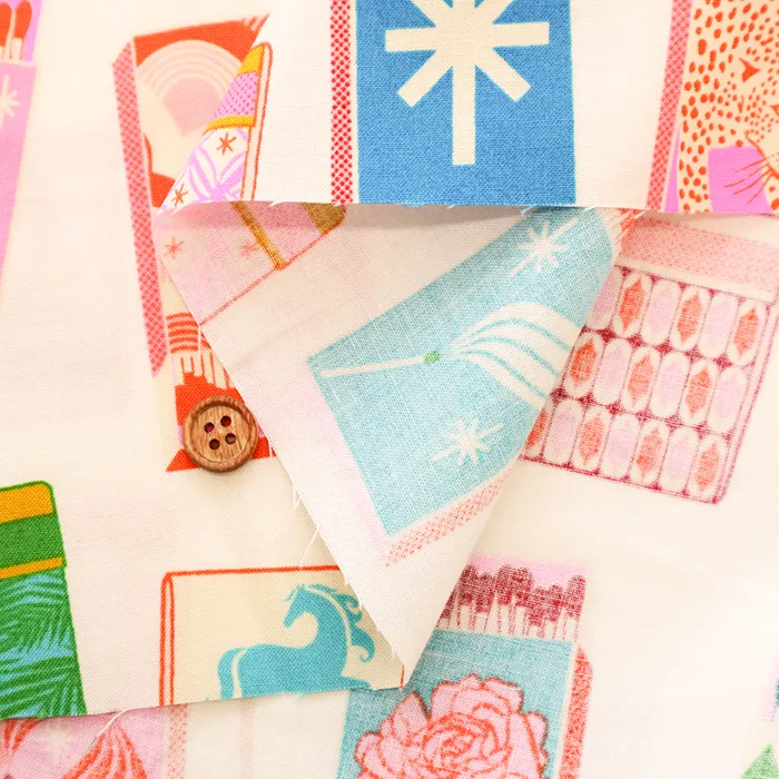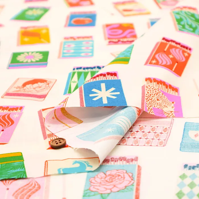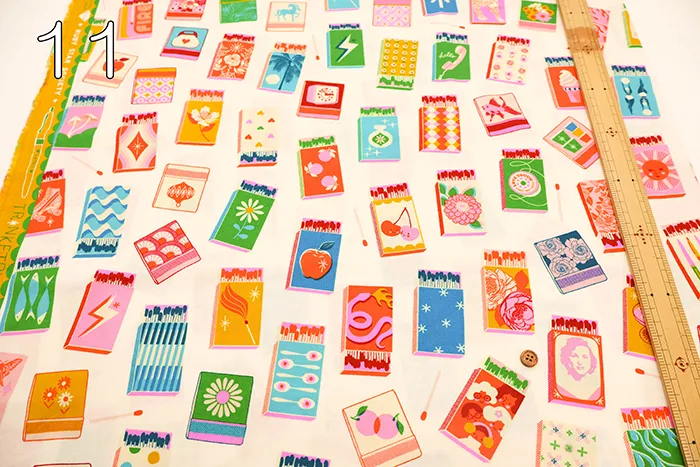 シーチングくらいの厚みで、扱いやすい平織りの生地です。扱いやすい生地ですので、インテリアや雑貨小物などの材料にいかがでしょうか。