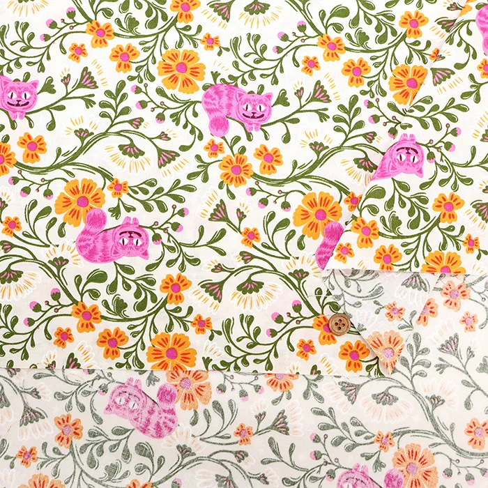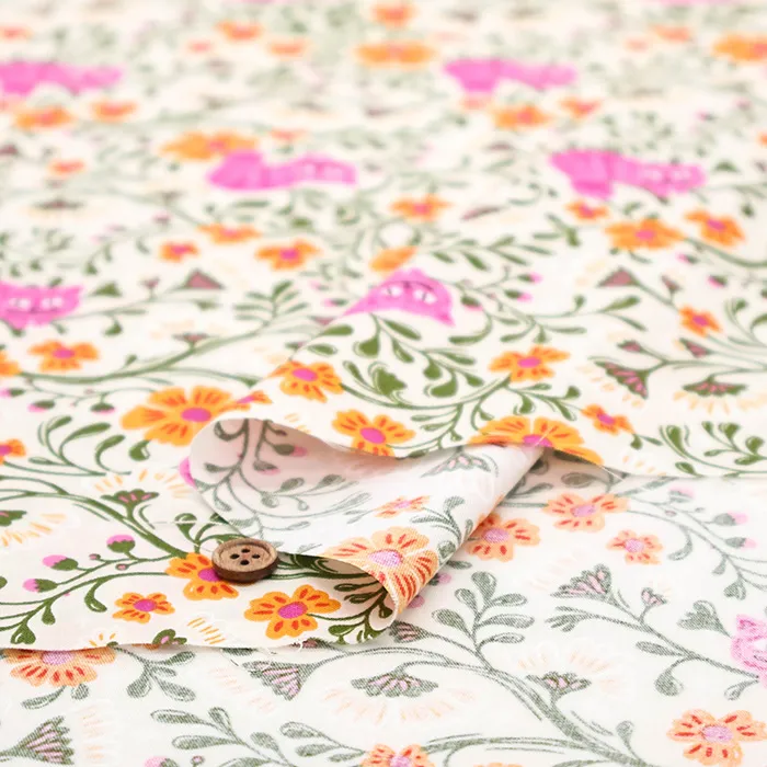 シーチングくらいの厚みで、扱いやすい平織りの生地です。扱いやすい生地ですので、インテリアや雑貨小物などの材料にいかがでしょうか。