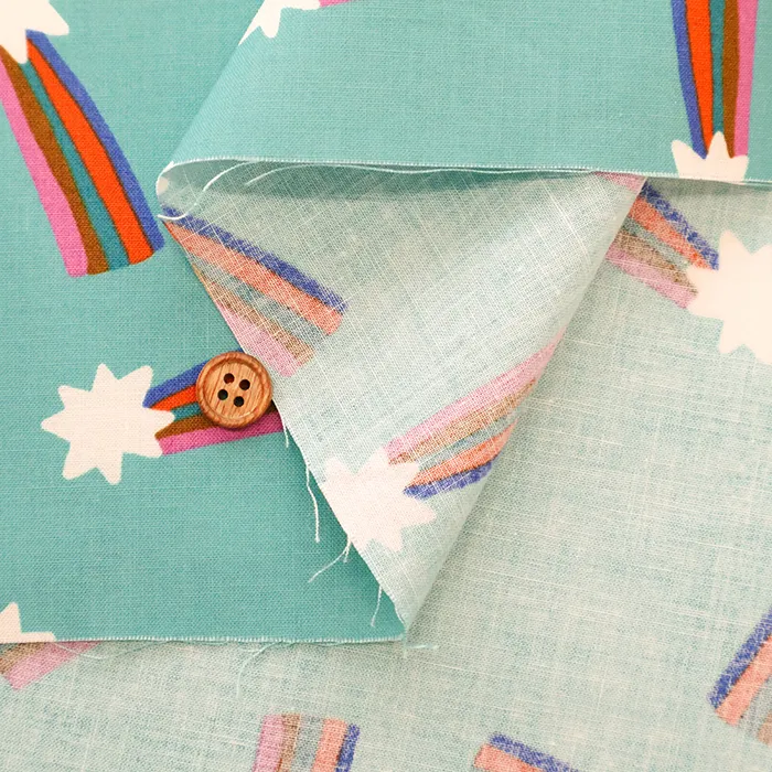 シーチングくらいの厚みで、扱いやすい平織りの生地です。扱いやすい生地ですので、インテリアや雑貨小物などの材料にいかがでしょうか。