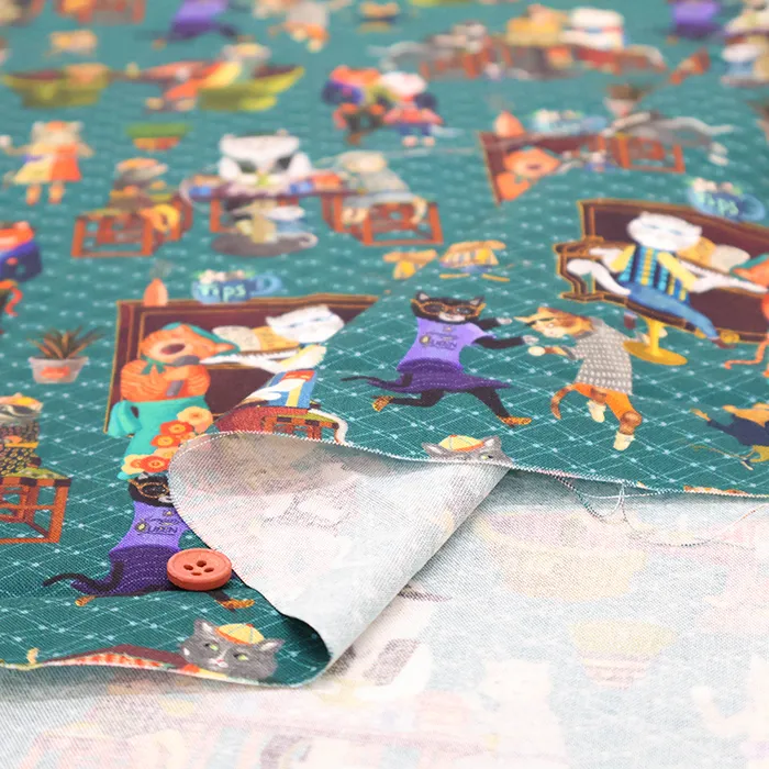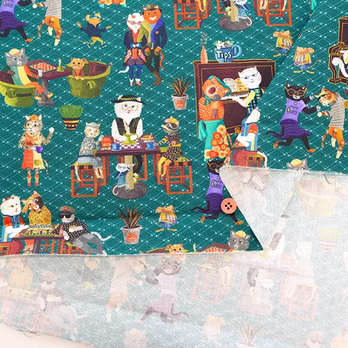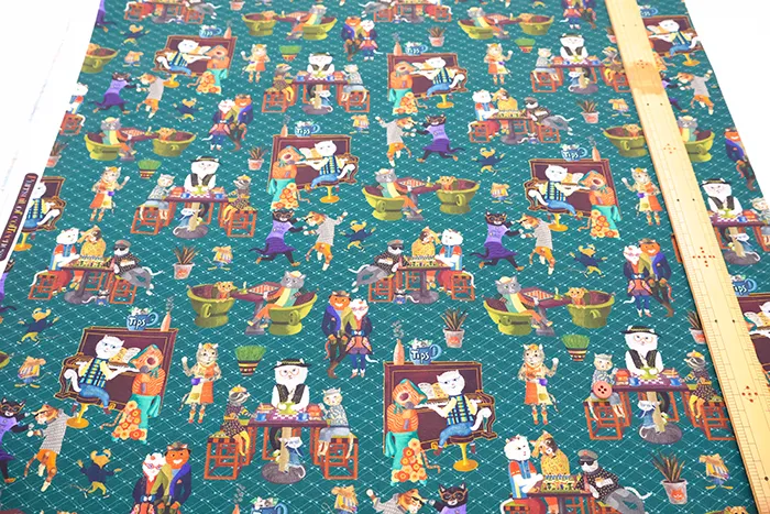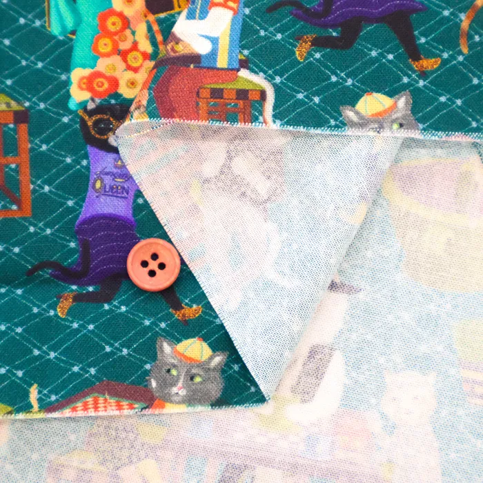 シーチングくらいの厚みで、扱いやすい平織りの生地です。扱いやすい生地ですので、インテリアや雑貨小物などの材料にいかがでしょうか。