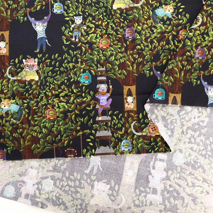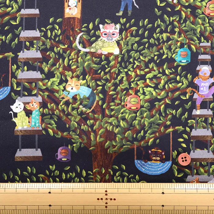 USAコットンプリント生地 MICHAEL MILLER CATS ON TREE