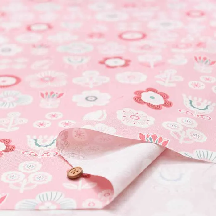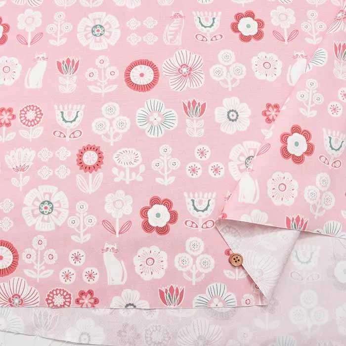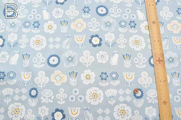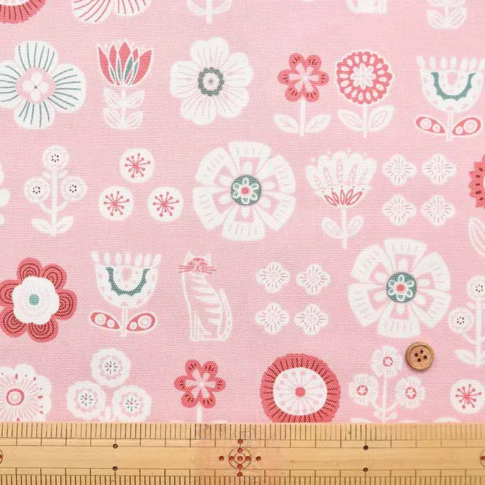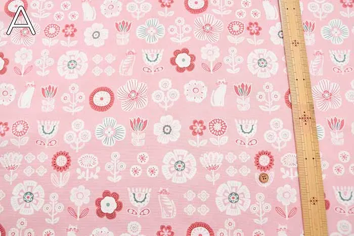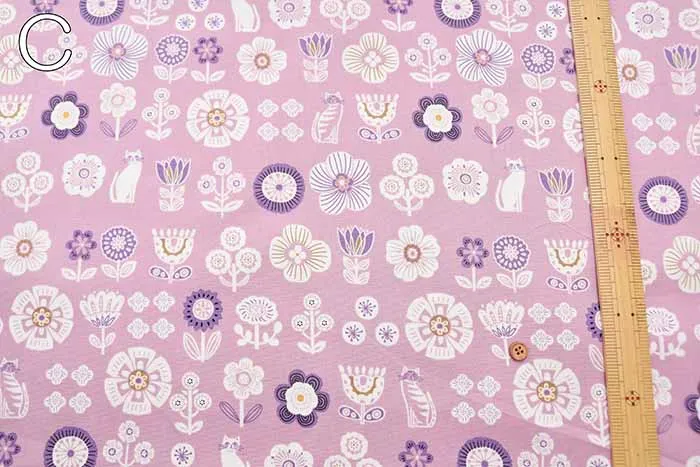 コットンオックスプリント生地 花とネコ