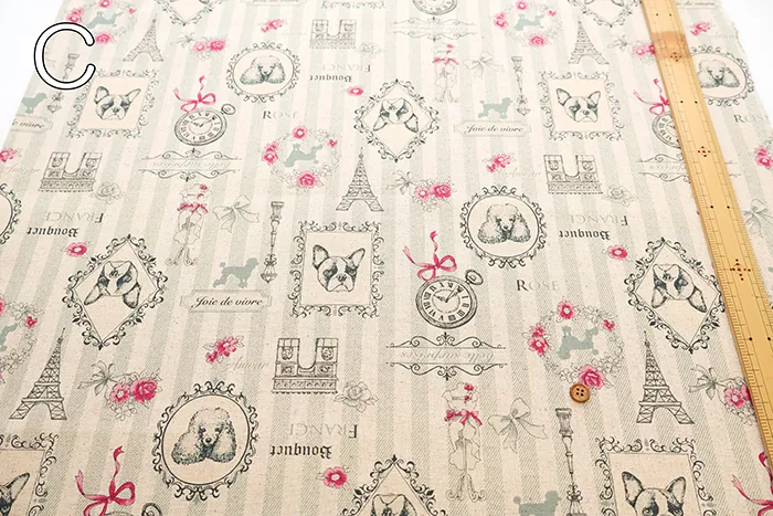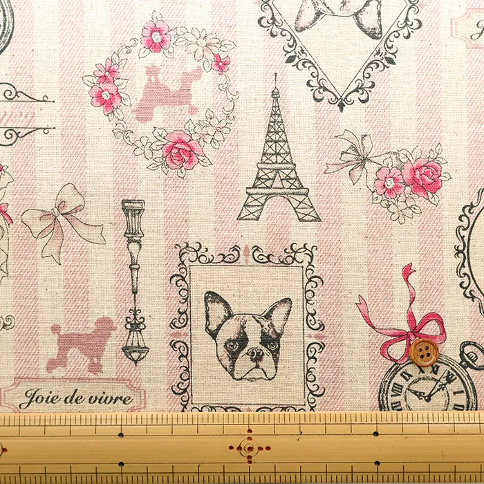 C/Lキャンバスプリント生地 ストライプエッフェル塔