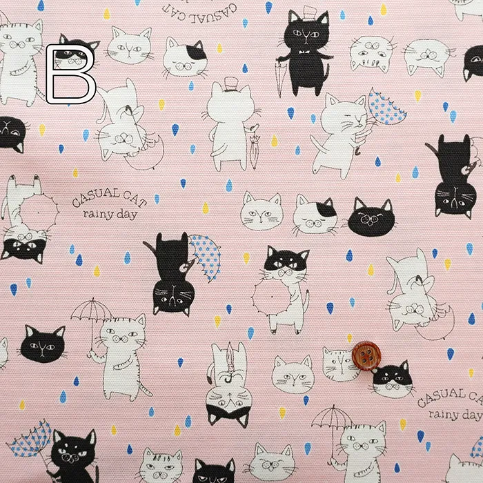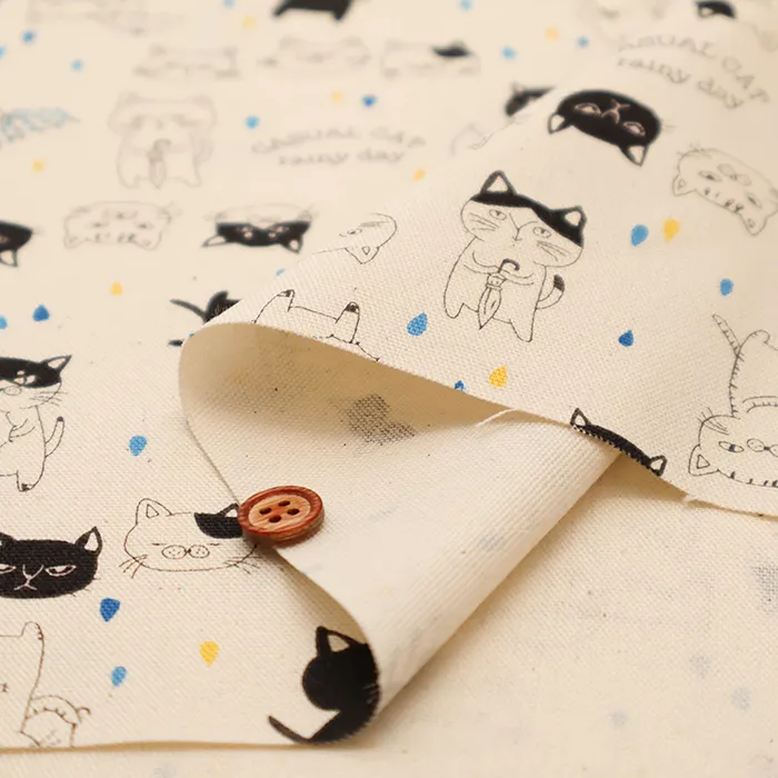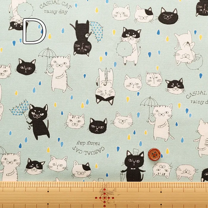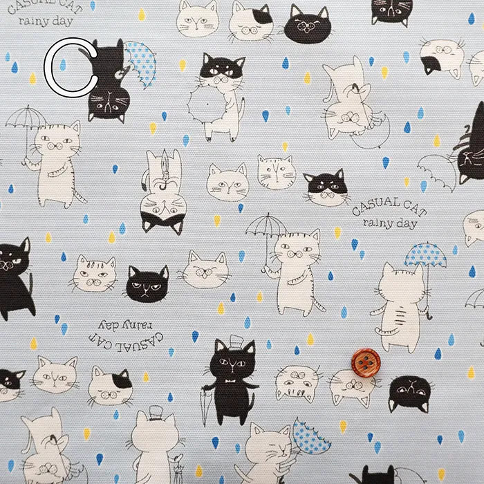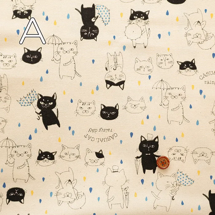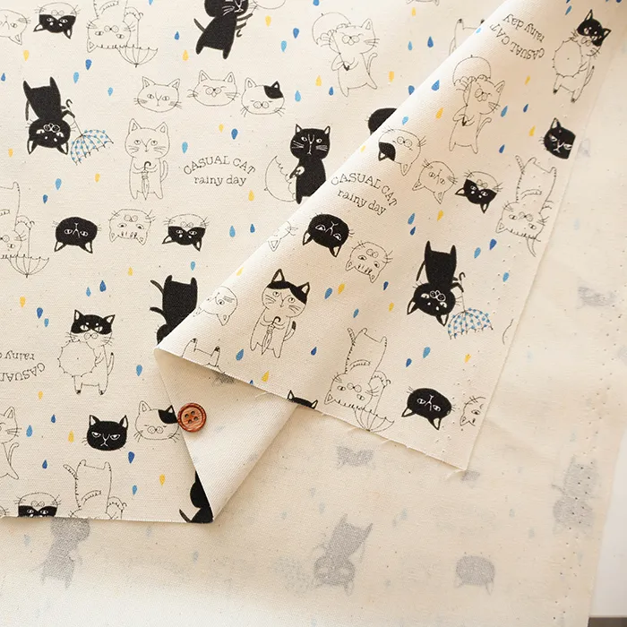 コットンオックスプリント生地 パラソルキャット