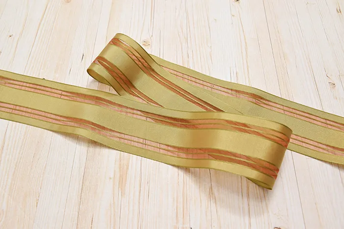 ストライプの一部分がシースルーになっており、透け感が涼しげなリボンです。