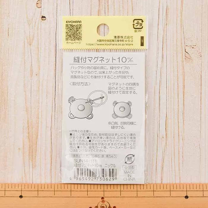 縫付タイプのマグネットなので、出来上がった作品や、既製品などにも後付けすることが可能です。
