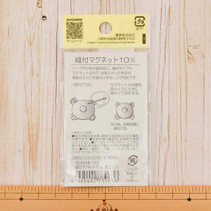 縫付タイプのマグネットなので、出来上がった作品や、既製品などにも後付けすることが可能です。