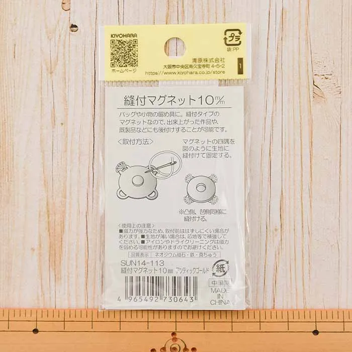 縫付タイプのマグネットなので、出来上がった作品や、既製品などにも後付けすることが可能です。