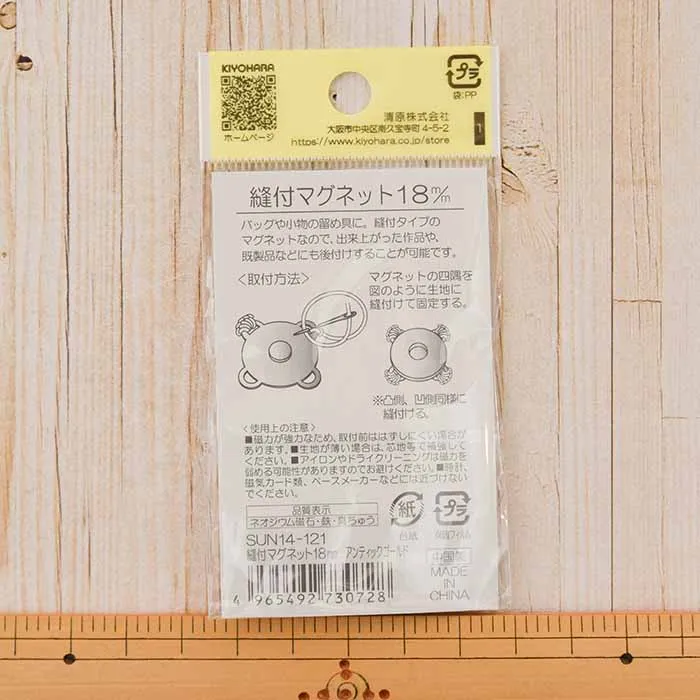 縫付タイプのマグネットなので、出来上がった作品や、既製品などにも後付けすることが可能です。
