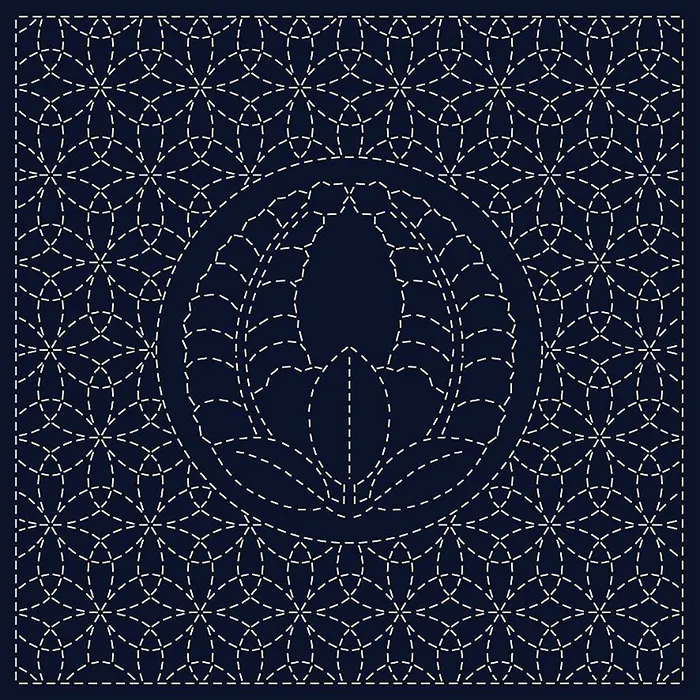 水で消える染料で図柄が印刷されているので、図案に沿って刺していけば、図案通りの模様が完成します。