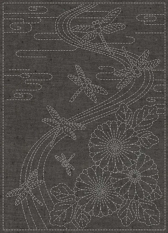 刺繍布「刺し子クロス」SASHIKO CLOTH “ Twilight Dragonfly”