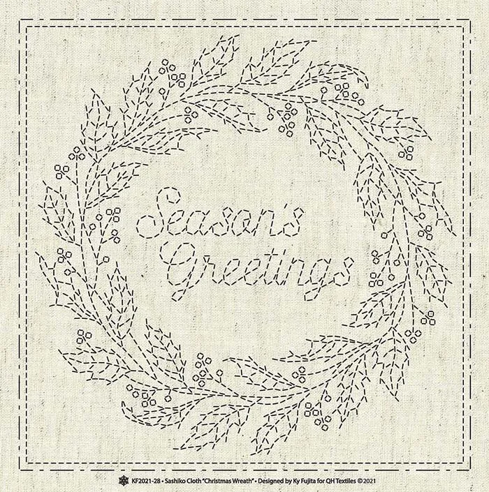 刺繍布「刺し子クロス」SASHIKO CLOTH “CHRISTMAS WREATH”
