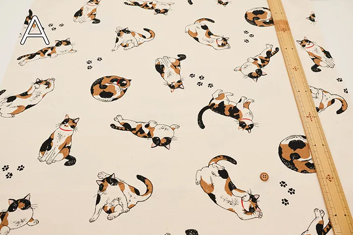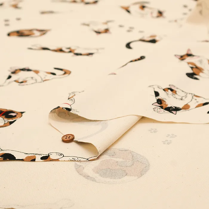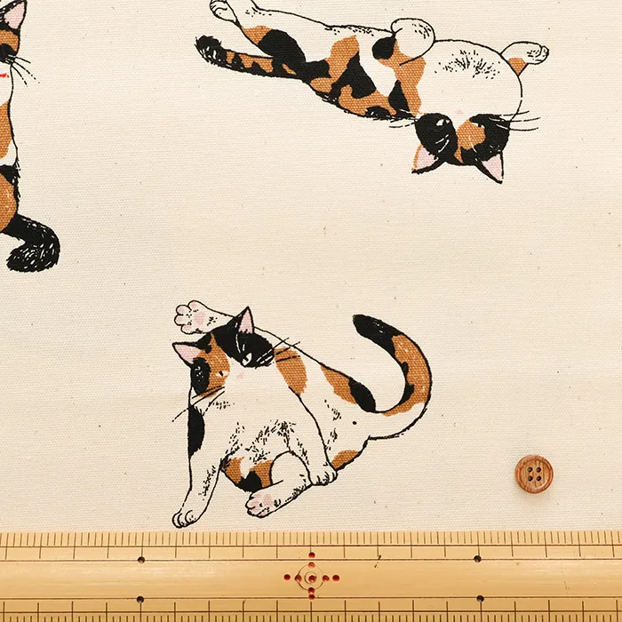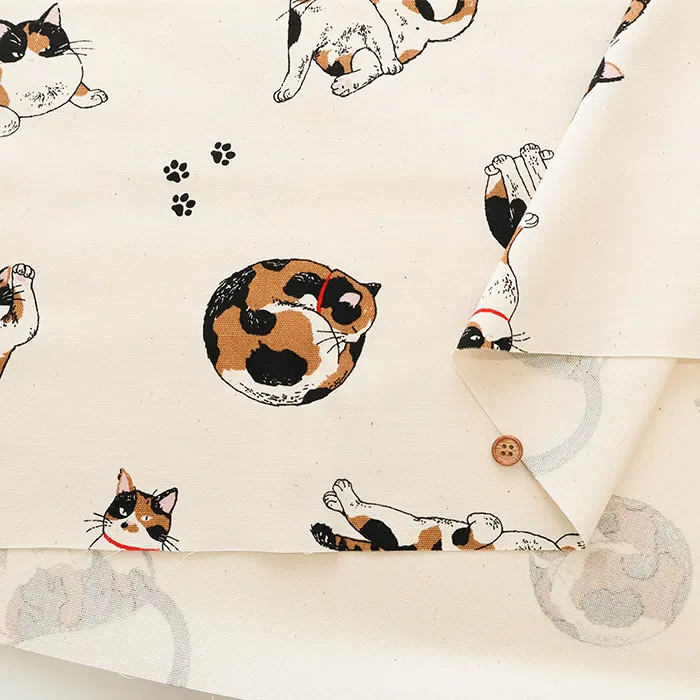 コットンオックスプリント生地 三毛猫