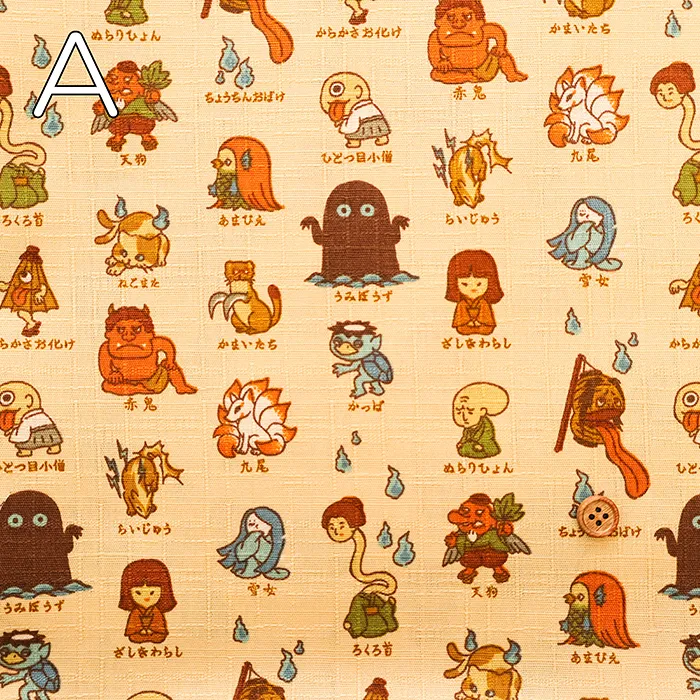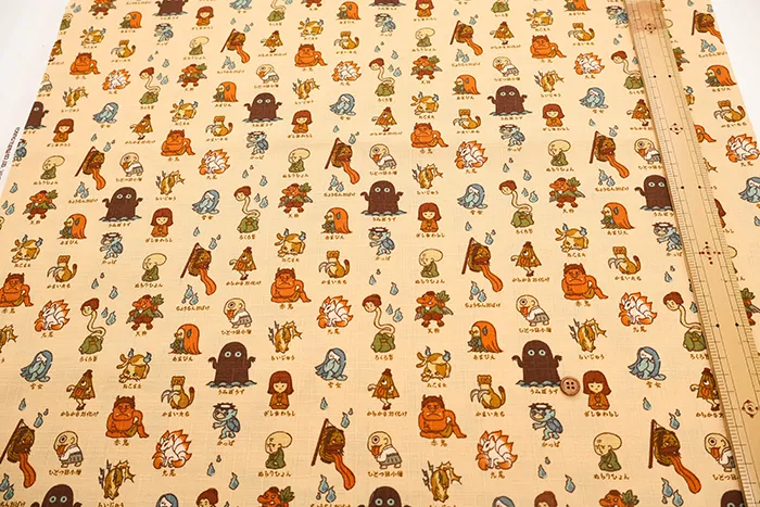 コットンドビープリント生地 妖怪 (1h-030-ap62206-2)
