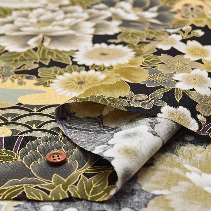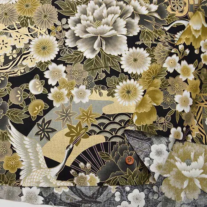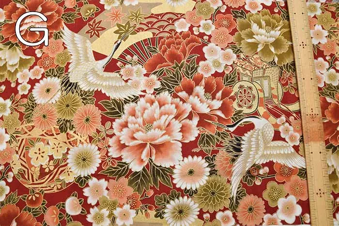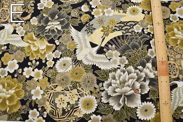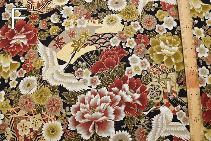 コットンシーチングプリント生地 和調つる