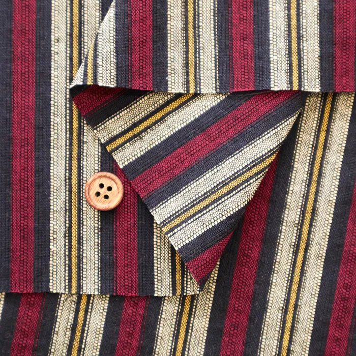先染めとは、糸を先に染めてから違う糸を組み合わせて柄を作り、最終的に1枚の生地に仕上げます。
