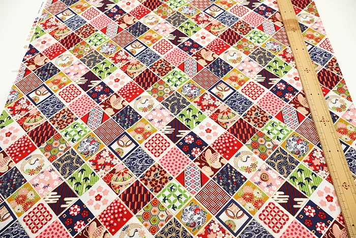 コットンシーチングラメプリント生地 和調 菱型 (1h-036-coco-6400-2)
