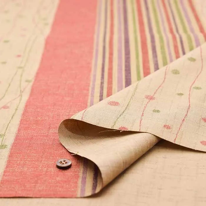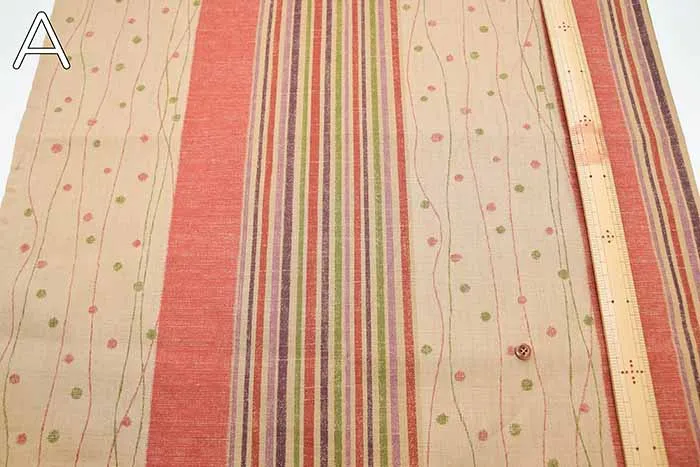 コットンサザンクロス抜染加工生地 変り縞水玉文様