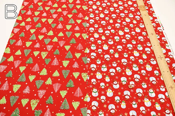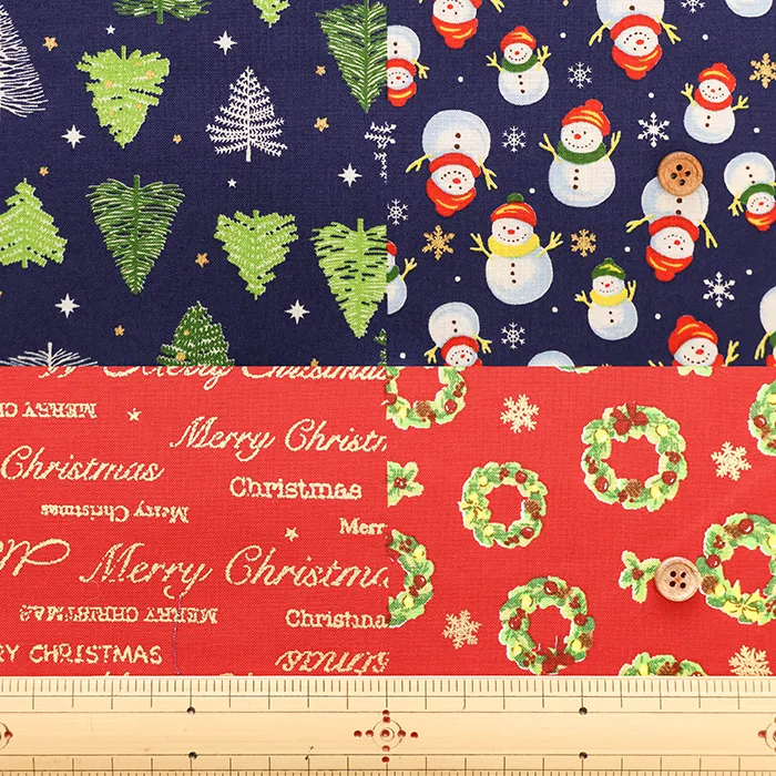 4柄が一つの生地に収まったおしゃれなデザインのクリスマスプリントです。