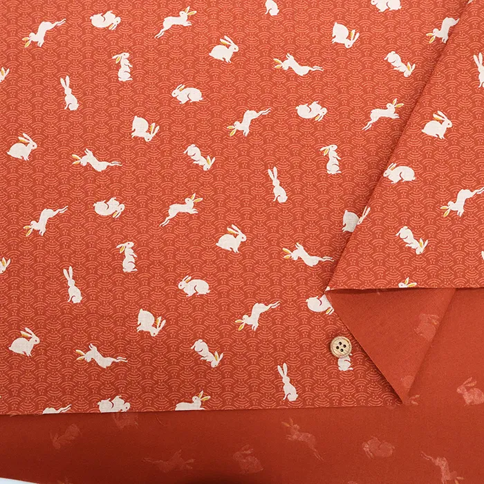 コットンシーチングプリント生地 和調ウサギ