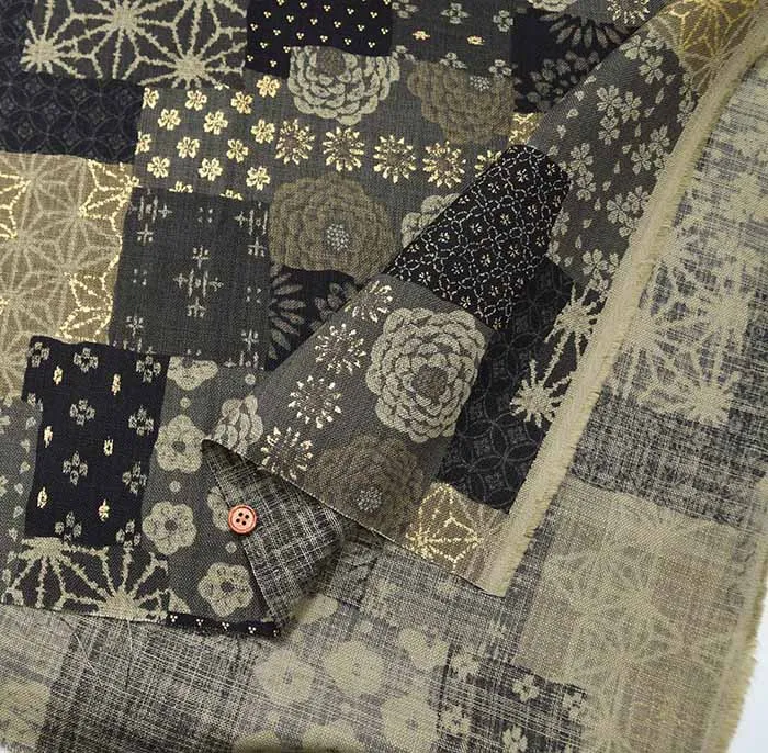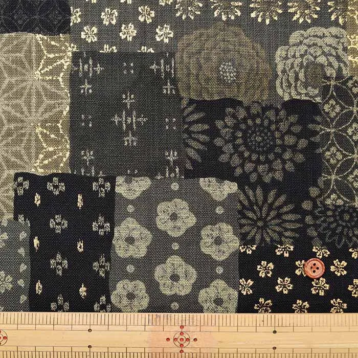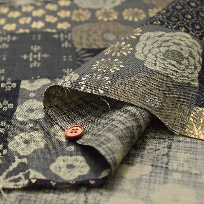 コットンムラ糸クロスプリント生地 和金道楽 継ぎはぎ