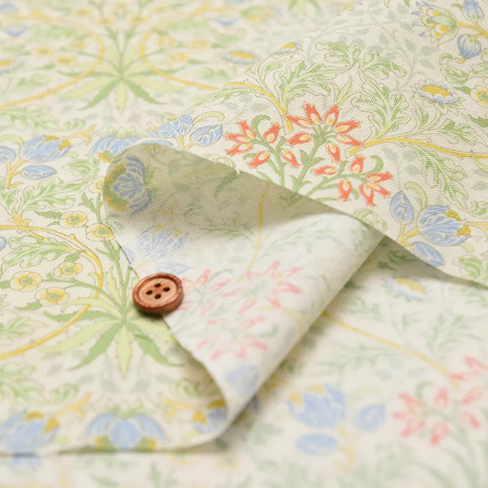 こちらの生地は、ヴィクトリア・アンド・アルバート博物館(V&A)が所蔵する、アーツ&クラフツ運動の主導者であるウィリアム・モリスによって生み出された美しい壁紙とテキスタイルからインスピレーションを得て作られた生地です。