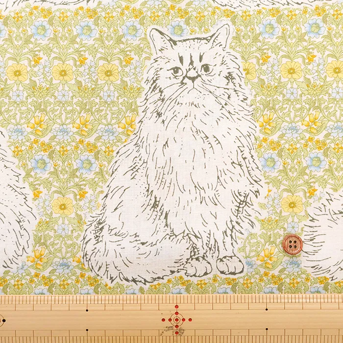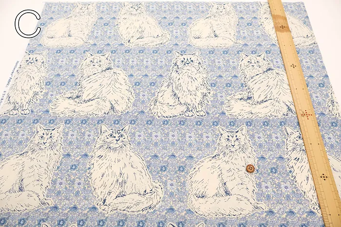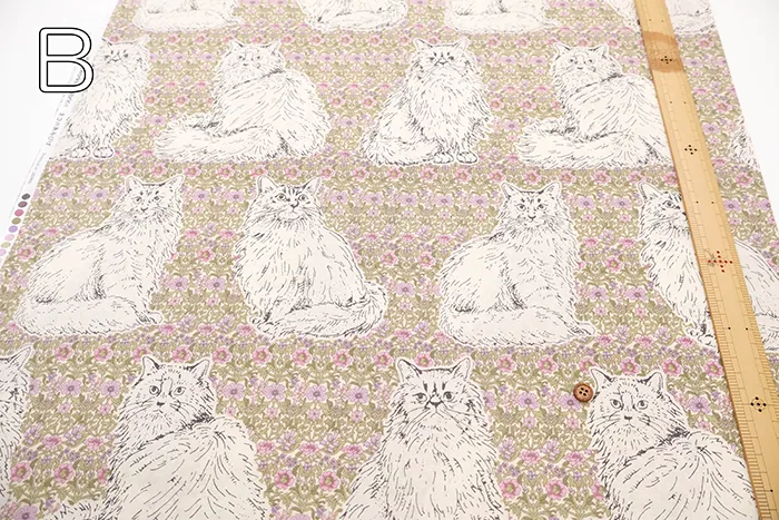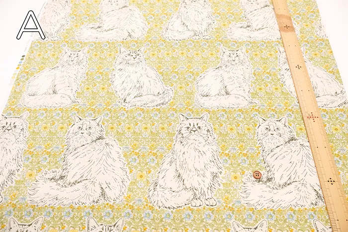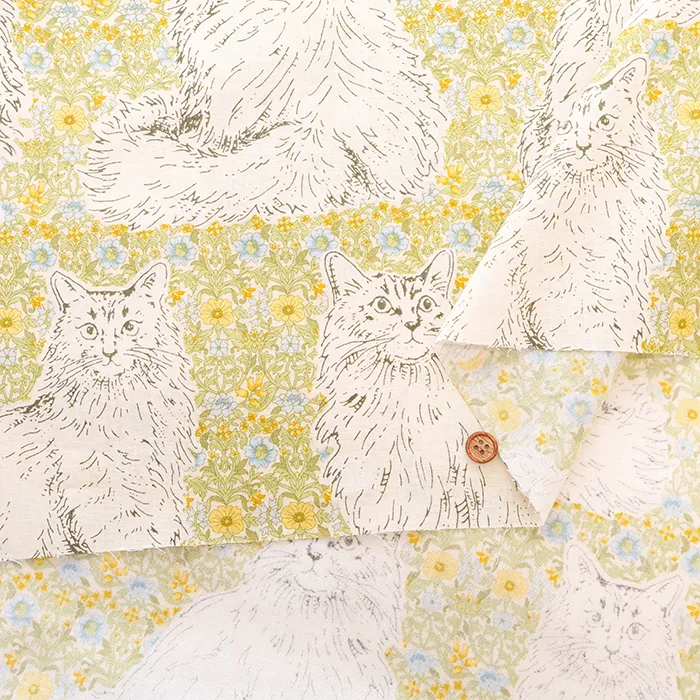 コットンスケアプリント生地 ネコのあそびば ネコとハナ