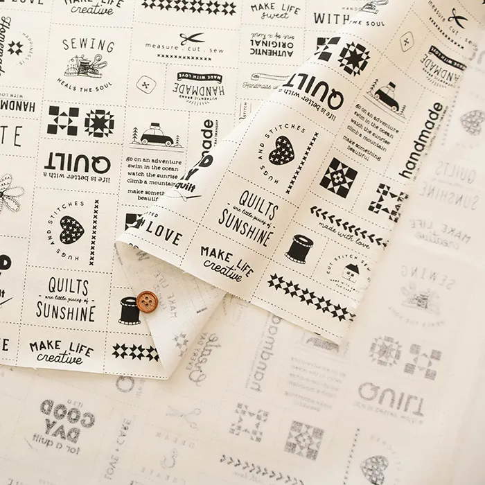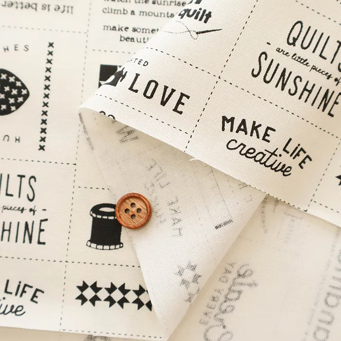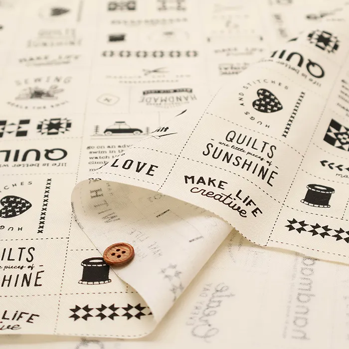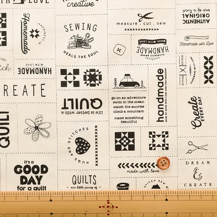 USAコットンプリント生地 THREADS MADE WITE LOVE