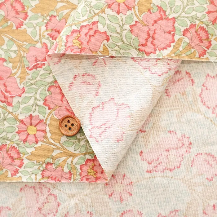 シーチング生地ほどの厚みで扱いやすく、お洋服やインテリアまで幅広くご使用いただくのに大変人気がございます。