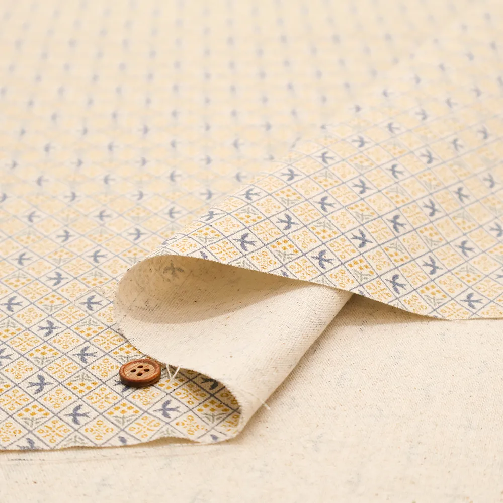 C/Lキャンバスプリント生地 sashiko moyo ミモザバード