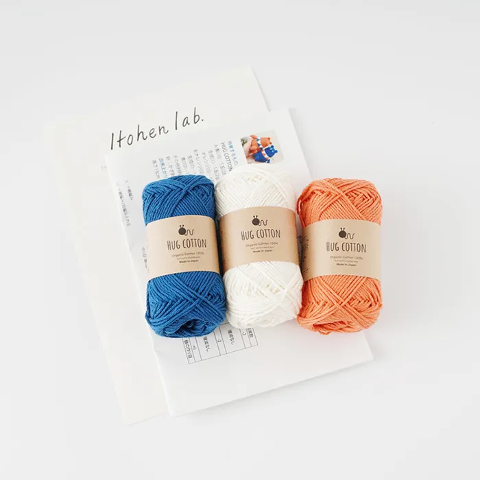 ・毛糸:HUG COTTON/青(10)、オレンジ(5)、生成(1)…各1玉