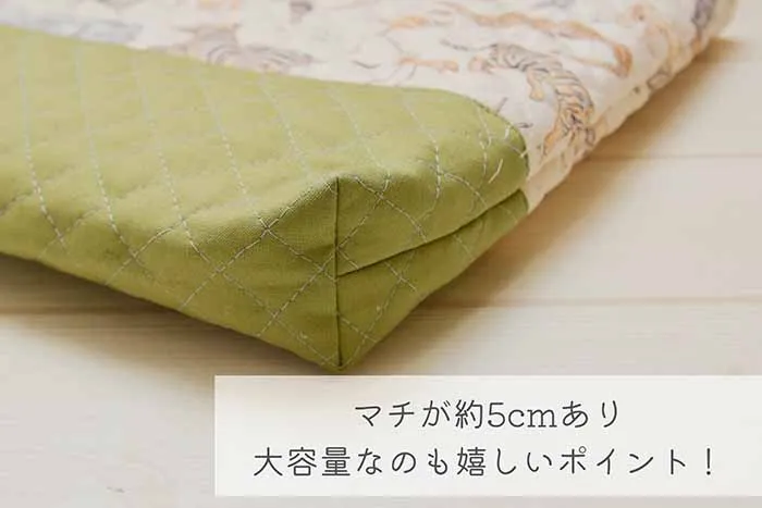 ・約5cmの大きめマチなので大容量!一般的な大きさのお道具箱もすっぽり入ります。