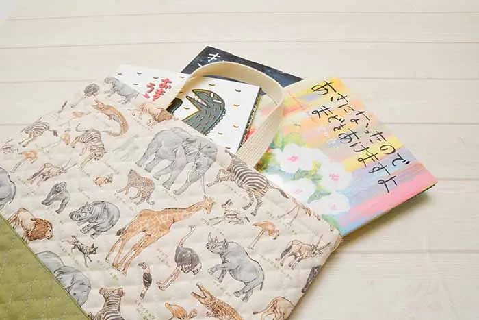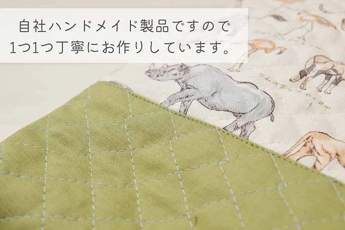 大人気のアニマル柄キルト生地と男の子に人気のカーキ色キルト生地で、カッコイイ仕上がりにしました!