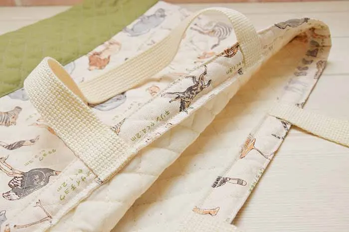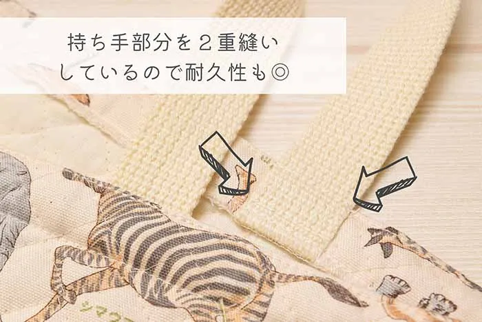 ・キルティング生地なのでシワになりにくく、持ち手部分を2重縫いすることで重さにも耐えられる丈夫な作りです。