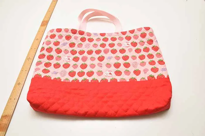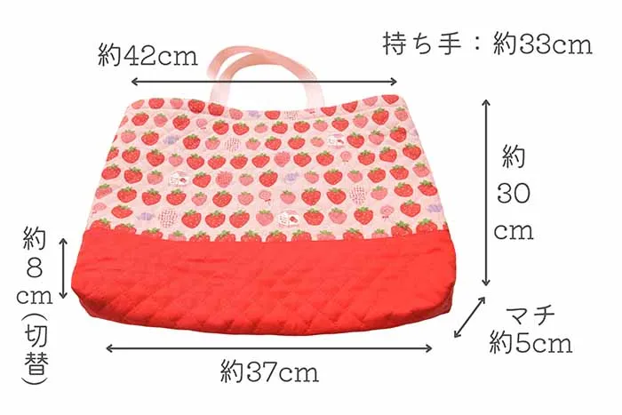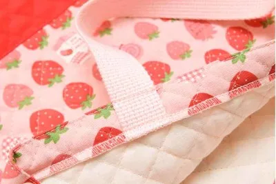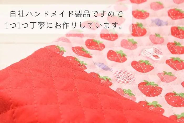 大人気のいちご柄キルト生地と女の子に人気の赤色キルト生地で、かわいくおしゃれな仕上がりにしました!