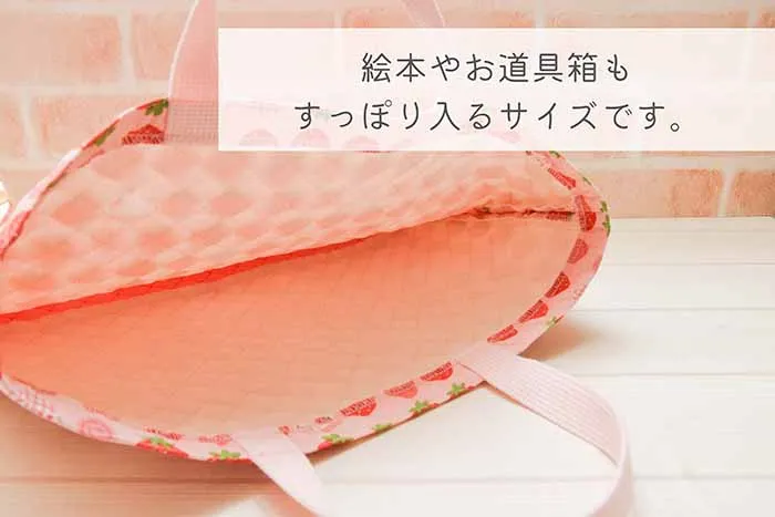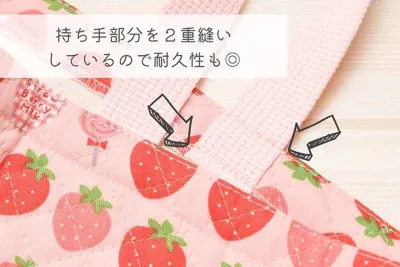 ・キルティング生地なのでシワになりにくく、持ち手部分を2重縫いすることで重さにも耐えられる丈夫な作りです。