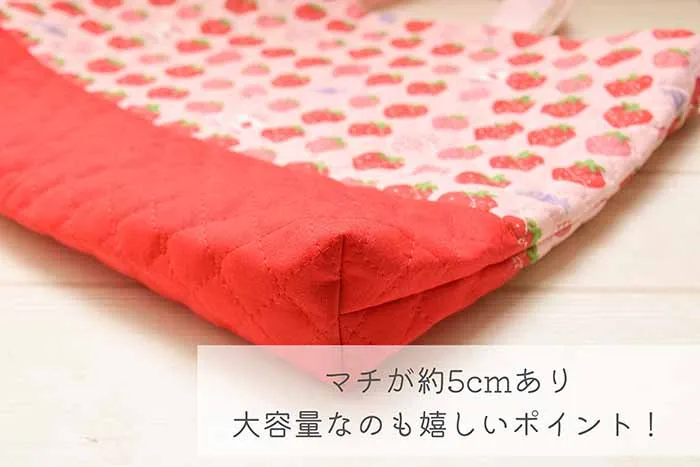 ・約5cmの大きめマチなので大容量!一般的な大きさのお道具箱もすっぽり入ります。